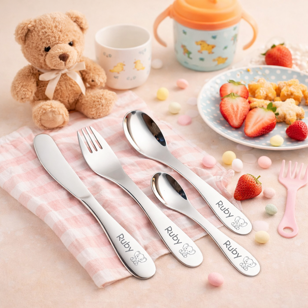 Personalisiertes Kinderbesteck mit Gravur aus rostfreiem Edelstahl