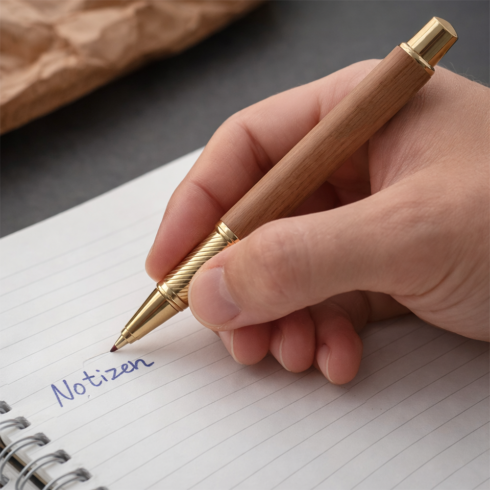 Jedes Schreibgerät ist durch die natürliche Holzmaserung ein echtes Einzelstück und verbindet Handwerkskunst mit modernem Design.