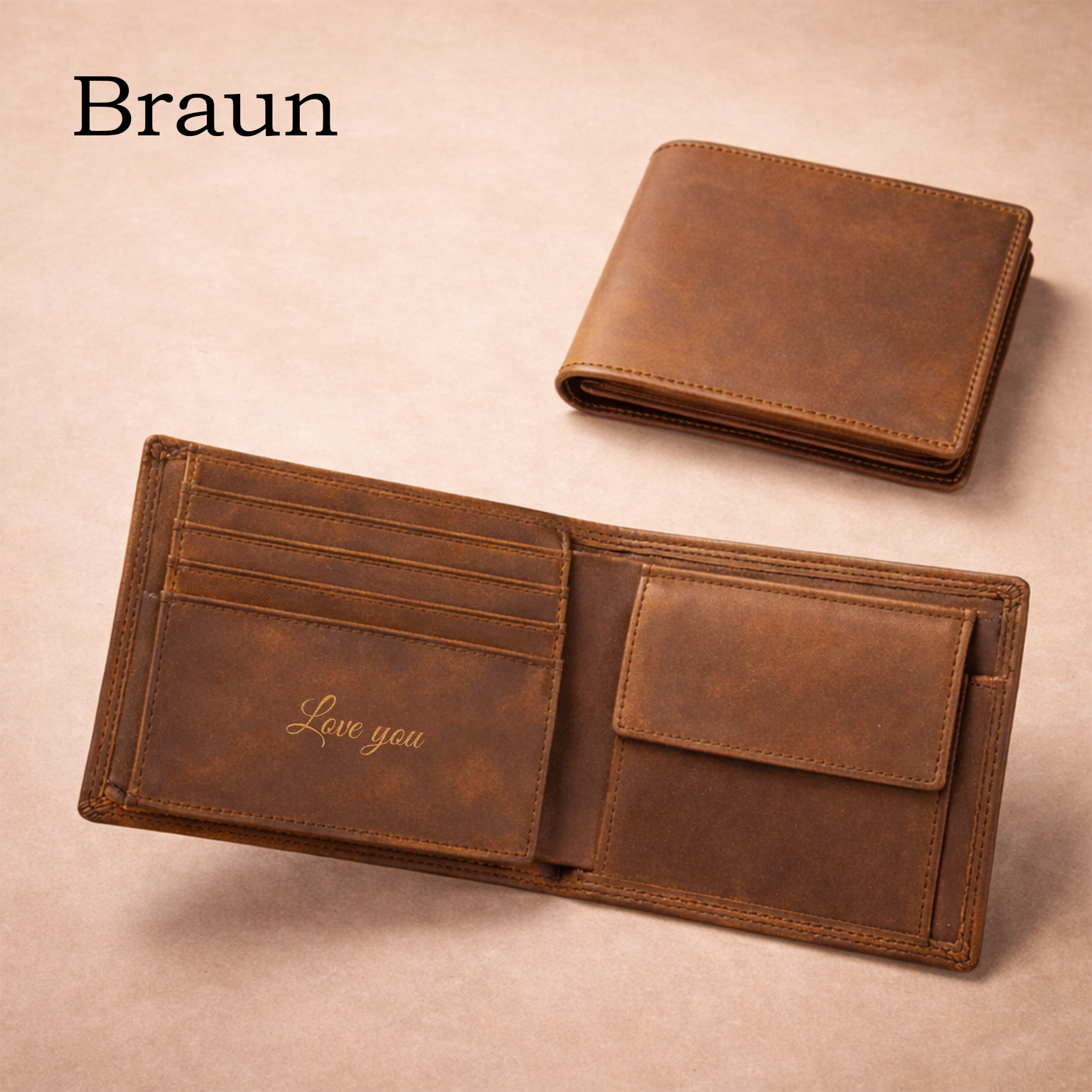 Weil sie nicht nur schön aussieht, sondern etwas ausdrückt. Sie steht für Wertschätzung, Nähe und Erinnerungen, die man jeden Tag bei sich tragen kann. Das echte Crazy Horse Leder sorgt für eine hochwertige, maskuline Optik, während die individuelle Gravur der Geldbörse eine ganz persönliche Seele verleiht.